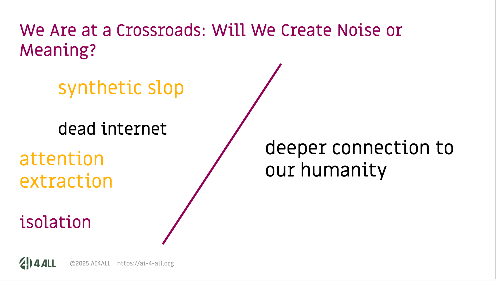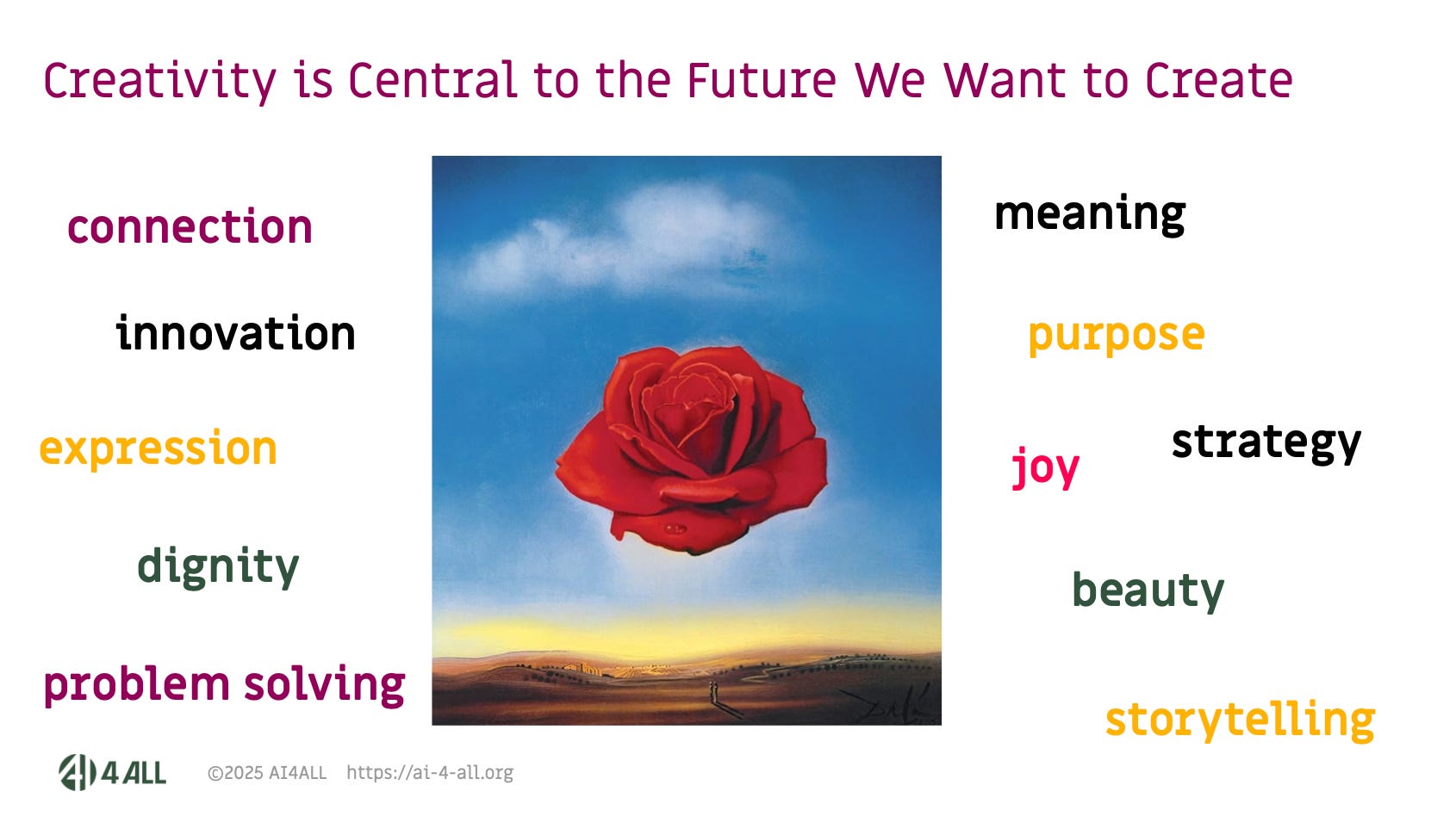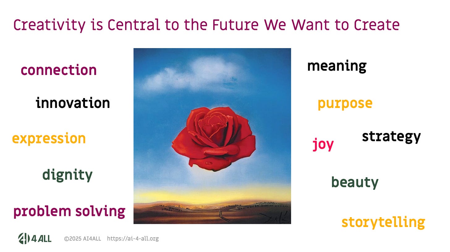 Some of the most meaningful creative experiences emerge from slowness, struggle, meandering, mistakes. AI optimizes for speed and efficiency. What do we lose when we rush to the finish line?